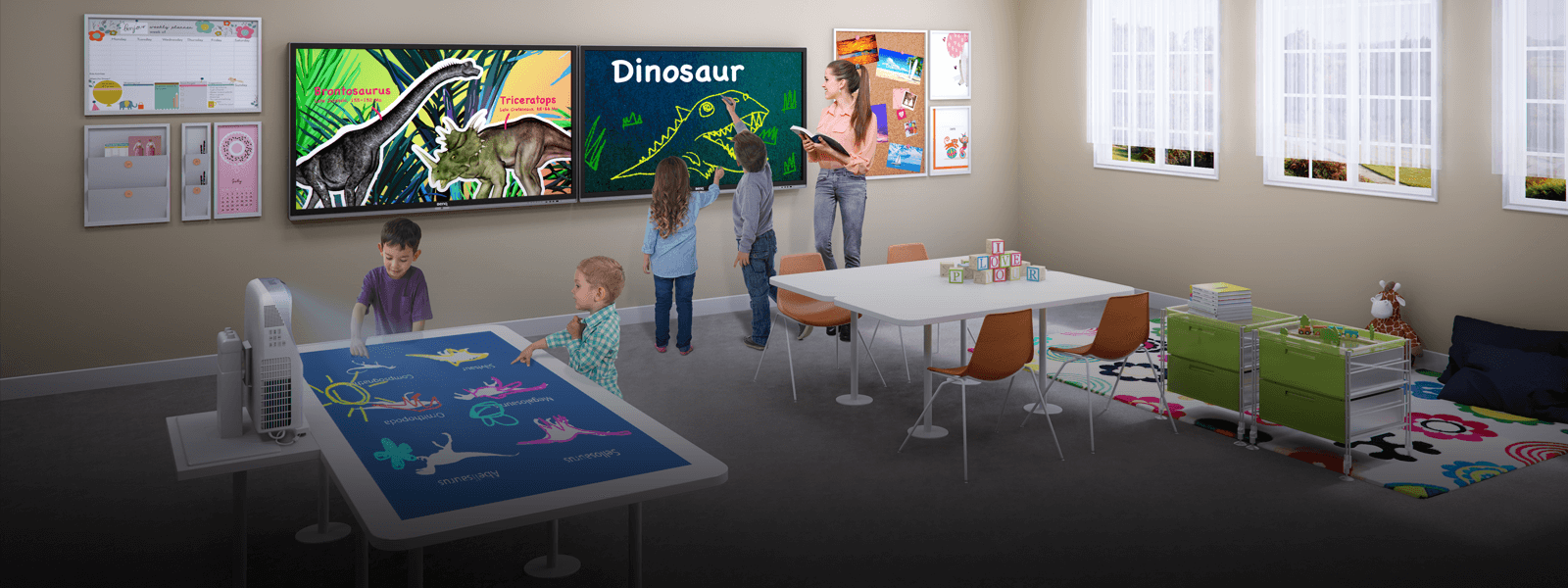 Velkoformátové displeje jsou v podstatě velké dotykové monitory s řadou aplikací. Práce s nimi je intuitivní a jednoduchá, podobně jako na mobilu či tabletu. Snadno vytvoříte či upravíte digitální obsah a naplánujete jeho zobrazení. Lze je také připojit k jiným zařízením.
